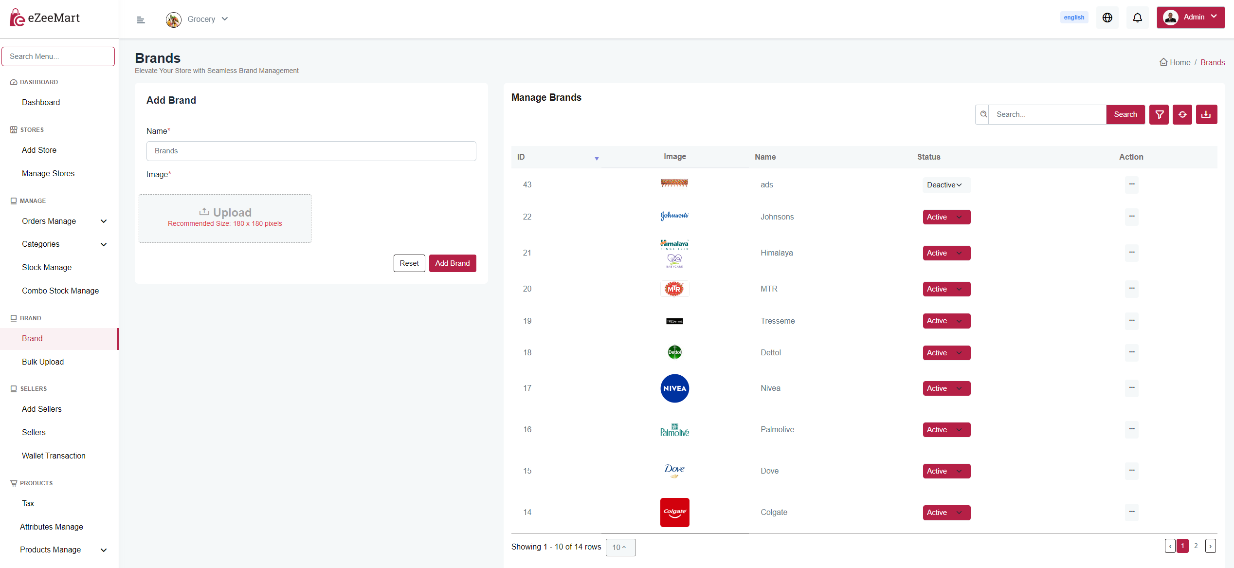 You can add, update and delete Brands from here.