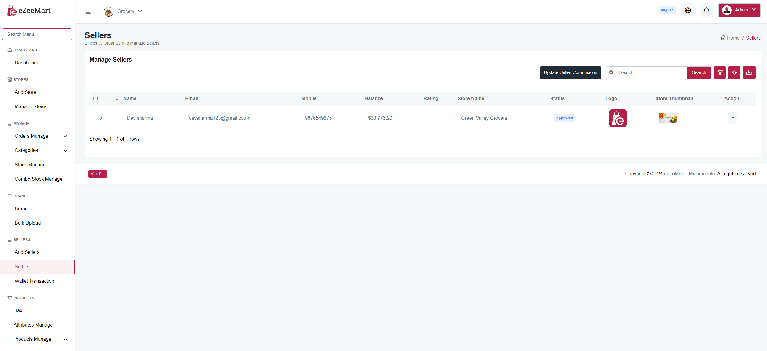 You can create sellers that contain the store name, description, store logo, favicon,permission , admin commission amount etc.. from here