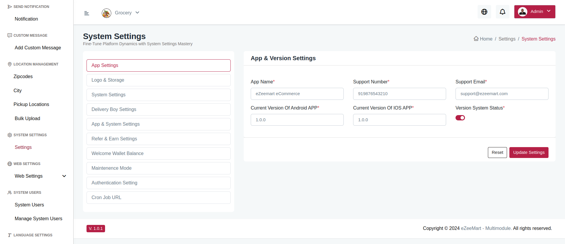 - Step 3: Open your ezeeMart admin panel and navigate to Settings > System Updater